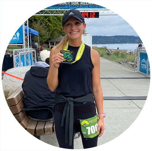 My first race was the Santa Runs Tacoma 10K, and race-day energy got me hooked! Over the years, running has helped me grow – learning to compete with myself instead of others, to embrace setbacks (like injuries), and making friends. I love being a part of our running community that is so encouraging and supportive, no matter your distance or pace.